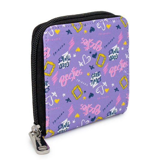 Women's Zip Around Wallet Square - Friends Icons and Quotes Collage Lavender Multi Color