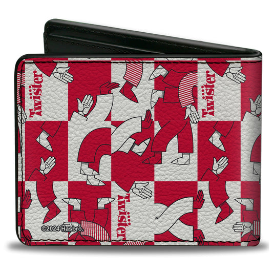 Bi-Fold Wallet - Twister Arm and Leg Pose Blocks Checker White/Red