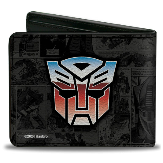 Bi-Fold Wallet - Transformers Autobots ROLL OUT Pose and Shield Comic Panels Grays