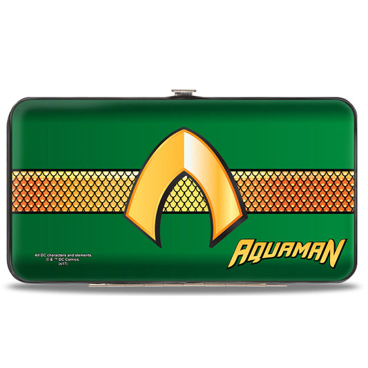 Hinged Wallet - AQUAMAN Classic Icon Scales Stripe Green Golds