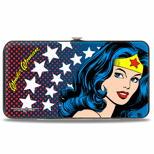 Hinged Wallet - WONDER WOMAN Stars Face Halftone Blues Red Yellow White
