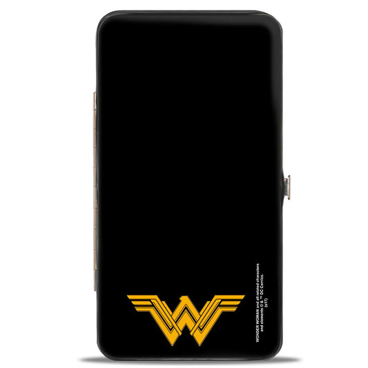 Hinged Wallet - Justice League 2017 Wonder Woman Pose + Icon Black White Gold Gray