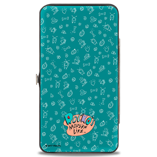 Hinged Wallet - Rocko's Modern Life Rocko & Spunky Pose + Logo Turquoise White
