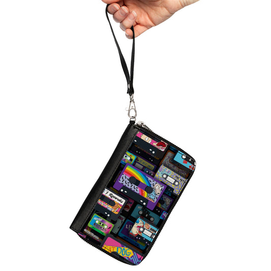 PU Zip Around Wallet Rectangle - Nick 90's Rewind Mash Up Cassette Tapes Collage Black