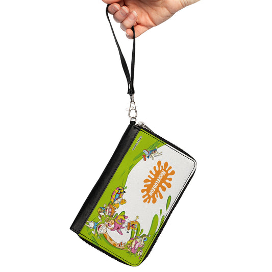 PU Zip Around Wallet Rectangle - Nick 90's Character Mash Up and NICKELODEON Splat Logo White