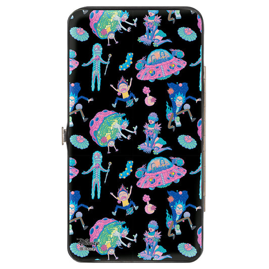 Hinged Wallet - Rick and Morty Portal Battle Scene + Botanical Cell Poses Collage Black