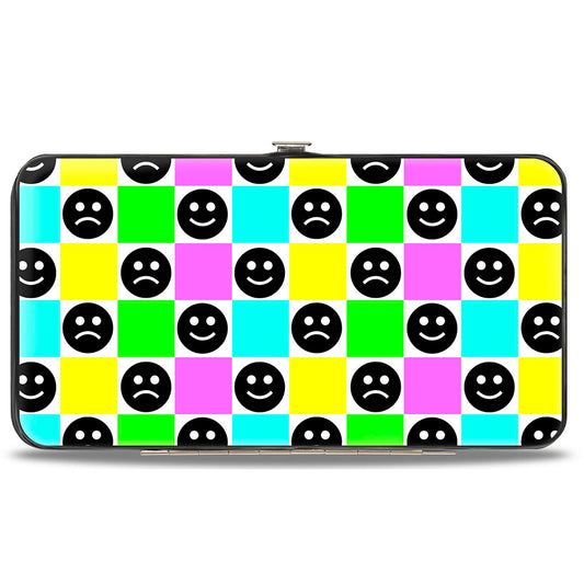 Hinged Wallet - Smiley Sad Face Checker Multi Color/White
