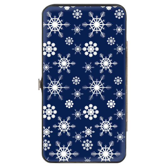 Hinged Wallet - Snowflakes Blue White
