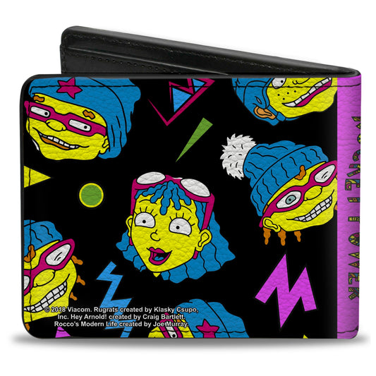 Bi-Fold Wallet - ROCKET POWER 4-Character Faces Scattered Black Multi Neon