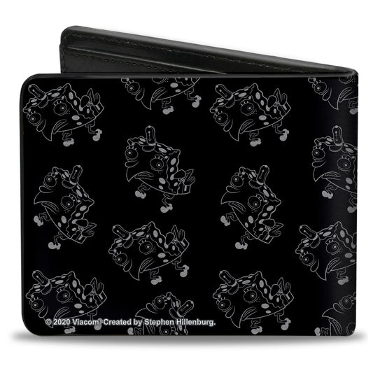 Bi-Fold Wallet - Mocking SpongeBob Pose Pose Outline Black Gray