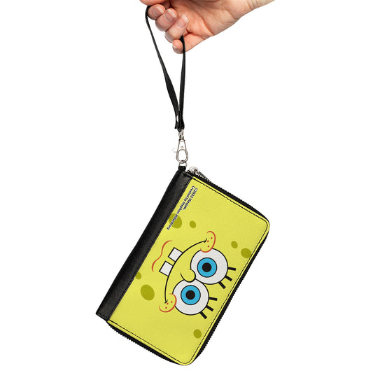 PU Zip Around Wallet Rectangle - SpongeBob Biting Lip Face Centered