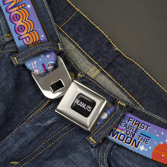 PEANUTS Title Logo Full Color Black/White Seatbelt Belt - Peanuts Astronaut Snoopy Launch Poses and Text White/Multi Color Webbing
