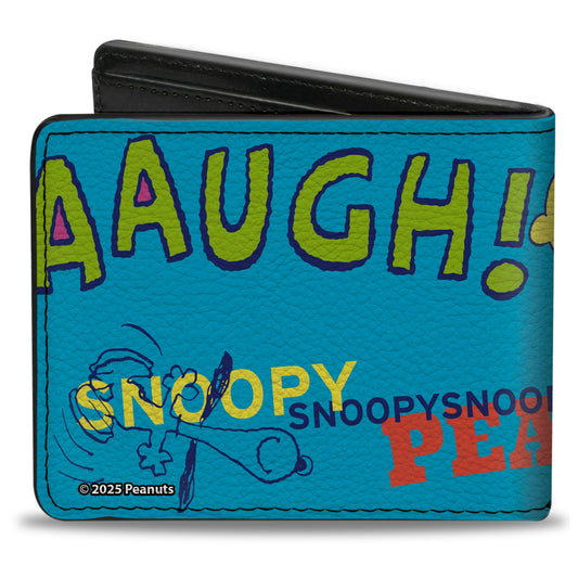 Bi-Fold Wallet - PEANUTS Charlie Brown Snoopy and Woodstock Typography Collage Blue/Multi Color