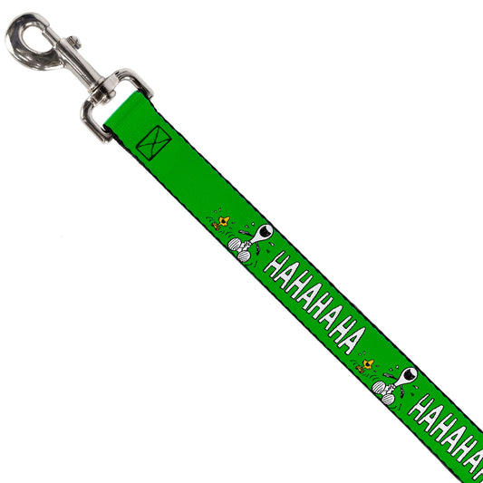 Dog Leash - Peanuts Snoopy and Woodstock Laughing HAHA Pose Green