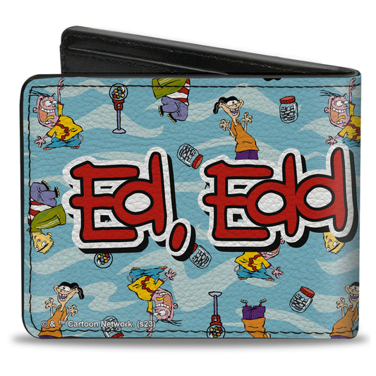 Bi-Fold Wallet - ED EDD N EDDY Title Logo and Character Poses Scattered Blues