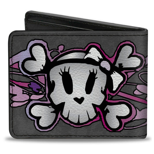 Bi-Fold Wallet - Girlie Skull Black White w Red Paint Drips