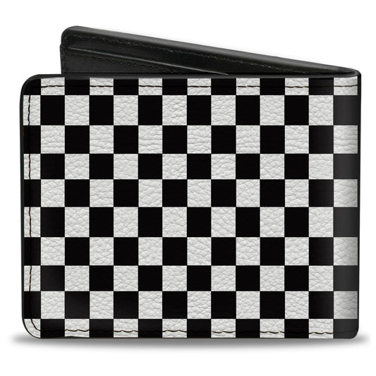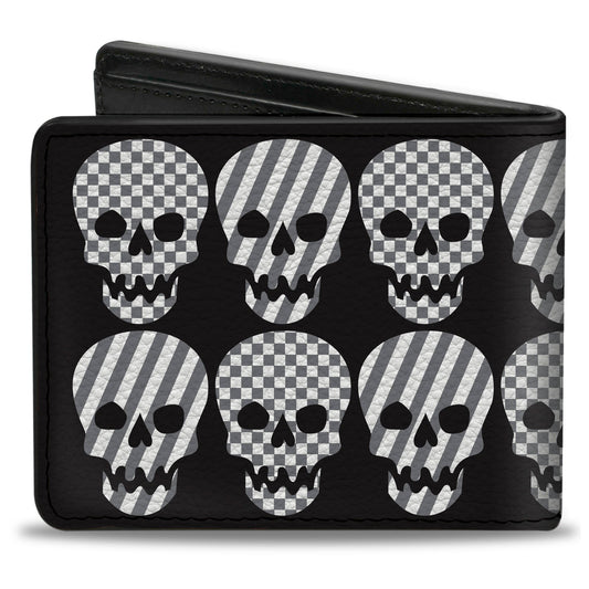Bi-Fold Wallet - Checker & Stripe Skulls Black White Gray