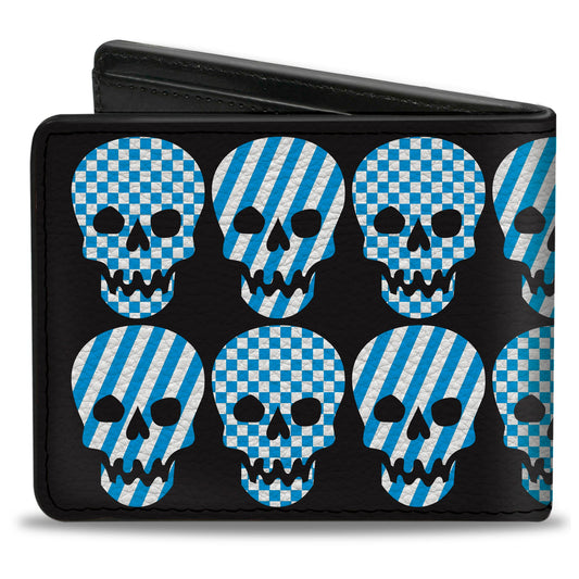 Bi-Fold Wallet - Checker & Stripe Skulls Black White Baby Blue