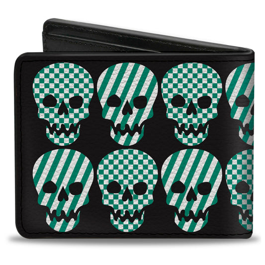 Bi-Fold Wallet - Checker & Stripe Skulls Black White Green