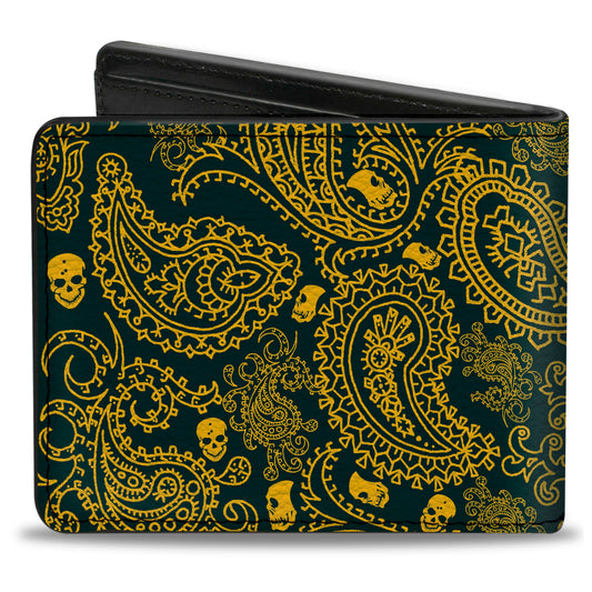 Bi-Fold Wallet - Bandana Skulls Green Gold