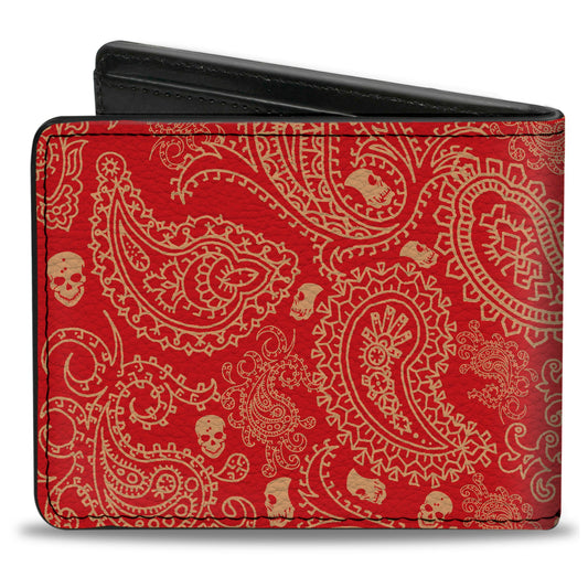 Bi-Fold Wallet - Bandana Skulls Scarlet Red Gold