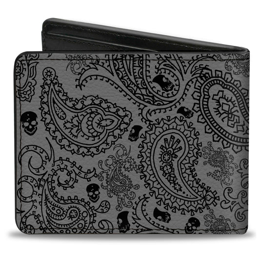 Bi-Fold Wallet - Bandana Skulls Silver Black