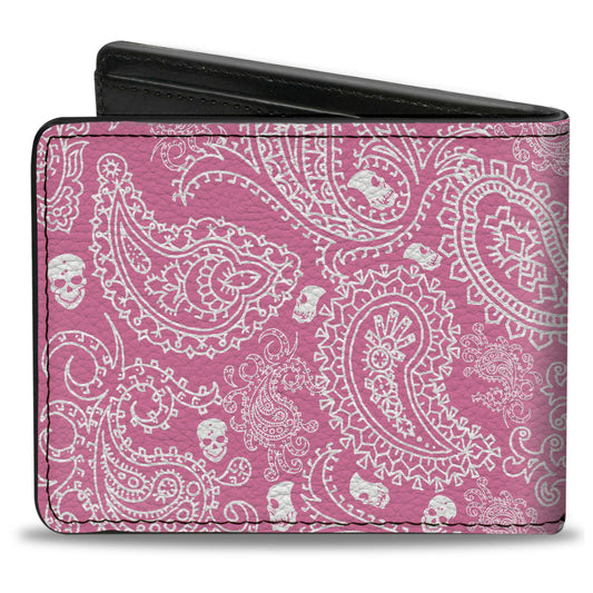 Bi-Fold Wallet - Bandana Skulls Pink White