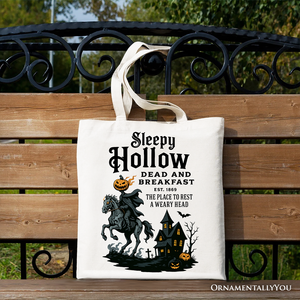 Headless Horseman Sleepy Hollow Halloween Canvas Tote Bag, Dead and Breakfast Retro Gift