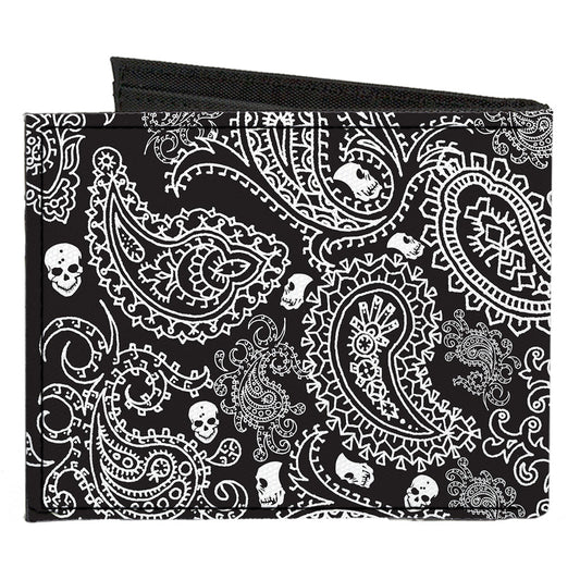 Canvas Bi-Fold Wallet - Bandana Skulls Black White