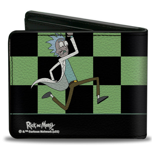 Bi-Fold Wallet - RICK AND MORTY Rick Running Pose Checker Black/Green