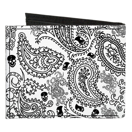 Canvas Bi-Fold Wallet - Bandana Skulls White Black
