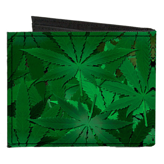 Canvas Bi-Fold Wallet - Marijuana Leaves Stacked