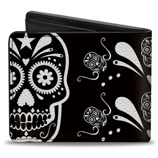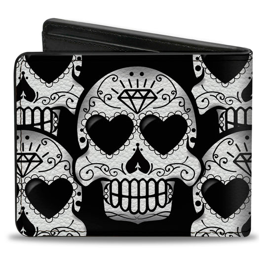 Bi-Fold Wallet - Diamond Sugar Skull Stacked Black Silver Fade White