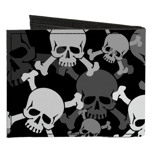 Canvas Bi-Fold Wallet - Top Skulls Stacked Black Gray White