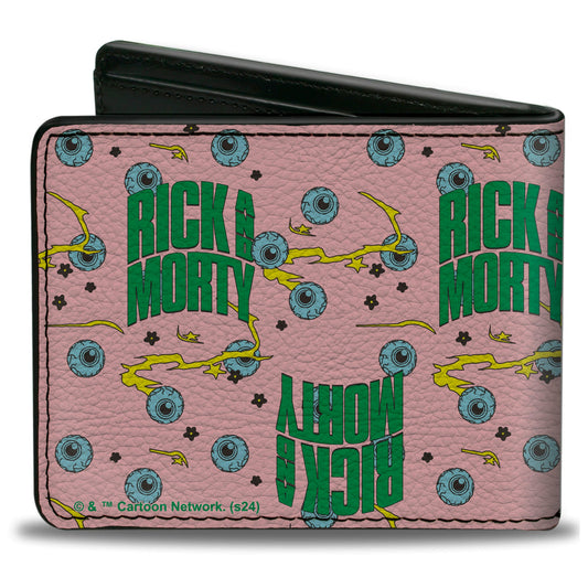 Bi-Fold Wallet - RICK AND MORTY Text and Eyeballs Pink/Green