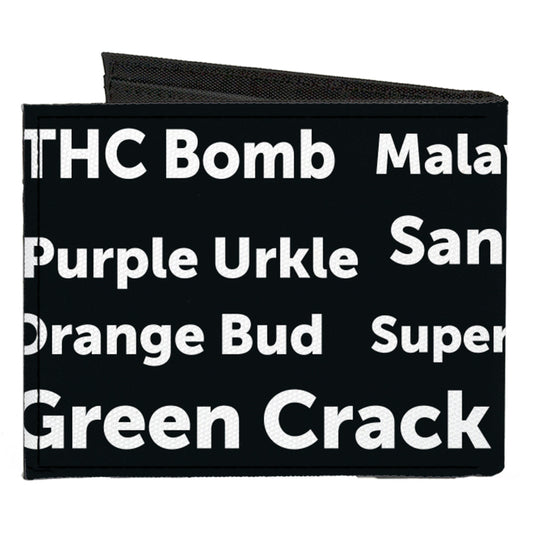 Canvas Bi-Fold Wallet - Verbiage Marijuana Strains Black White