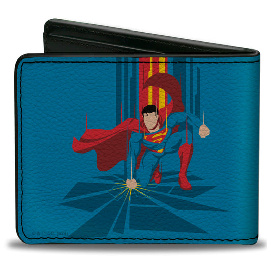 Bi-Fold Wallet - Superman Down Punch Silhouette Pose Blues/Reds/Yellow