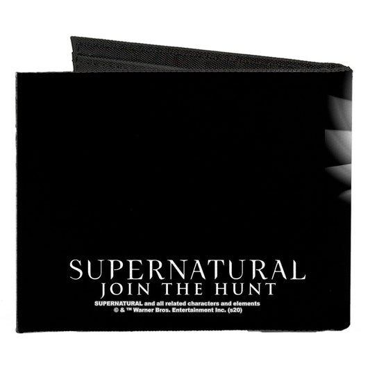 Canvas Bi-Fold Wallet - SUPERNATURAL Castiel Angel Wings Pose + Logo Black White