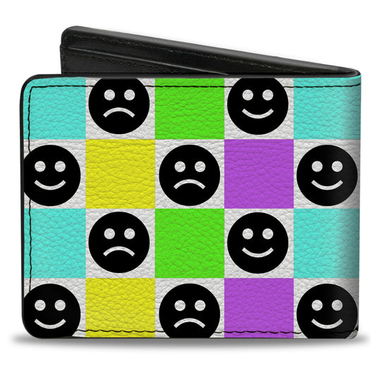 Bi-Fold Wallet - Smiley Sad Face Checker Multi Color/White