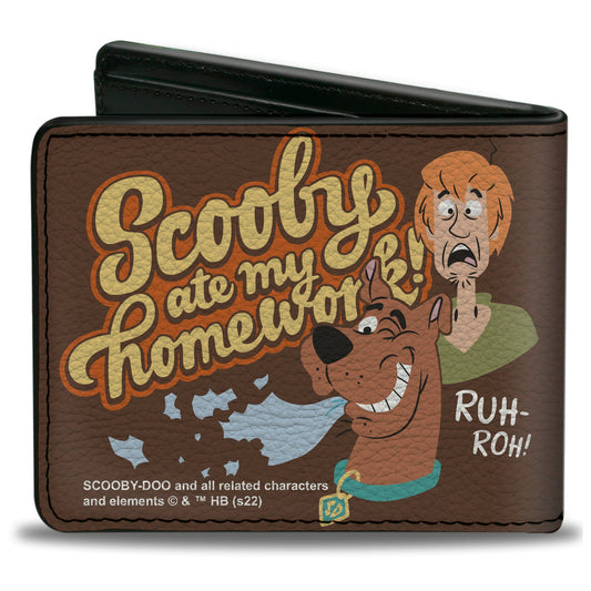 Bi-Fold Wallet - Scooby Doo and Shaggy SCOOBY ATE MY HOMEWORK Pose Brown