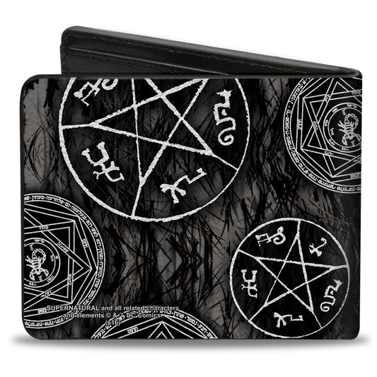 Bi-Fold Wallet - Supernatural Devil's Trap Pentagrams Grays Black White