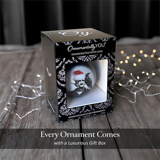 Edgar Allan Poe Spooky Christmas Portrait Glass Ornament, Black Horror Halloween Tree Decoration