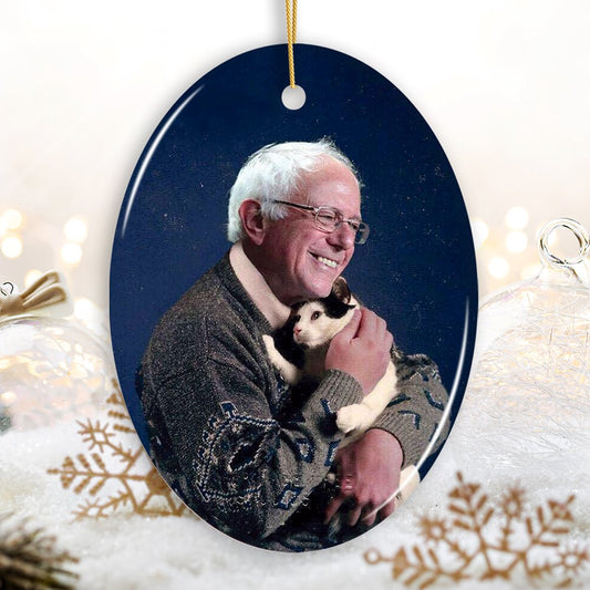 Bernie Sanders Ornament, Christmas Decoration Bernie Holding Cat