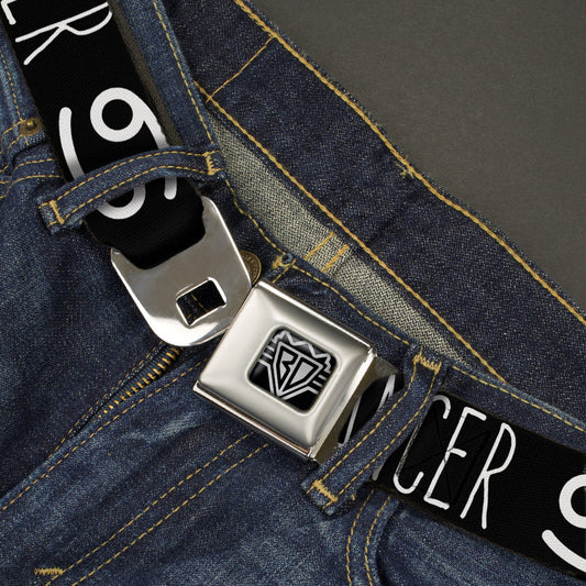 BD Wings Logo CLOSE-UP Full Color Black Silver Seatbelt Belt - Zodiac CANCER/Symbol Black/White Webbing