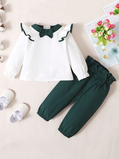 Dinosaur Round Neck Long Sleeve Top and Distressed Pants Set