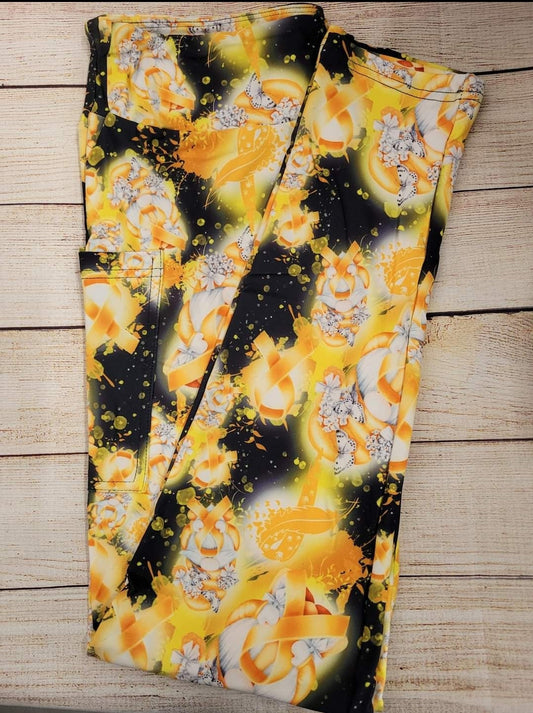 Yellow Cancer awareness Ribbon Leggings, Capris, Joggers, petite and regular Lounge