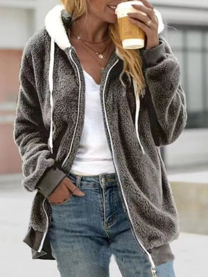 Children's Cute Cartoon Cat Print Fleece Lined Hooded Jacket with Bag
