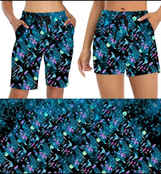 Purple & Teal Vintage Floral leggings, capris and Skorts