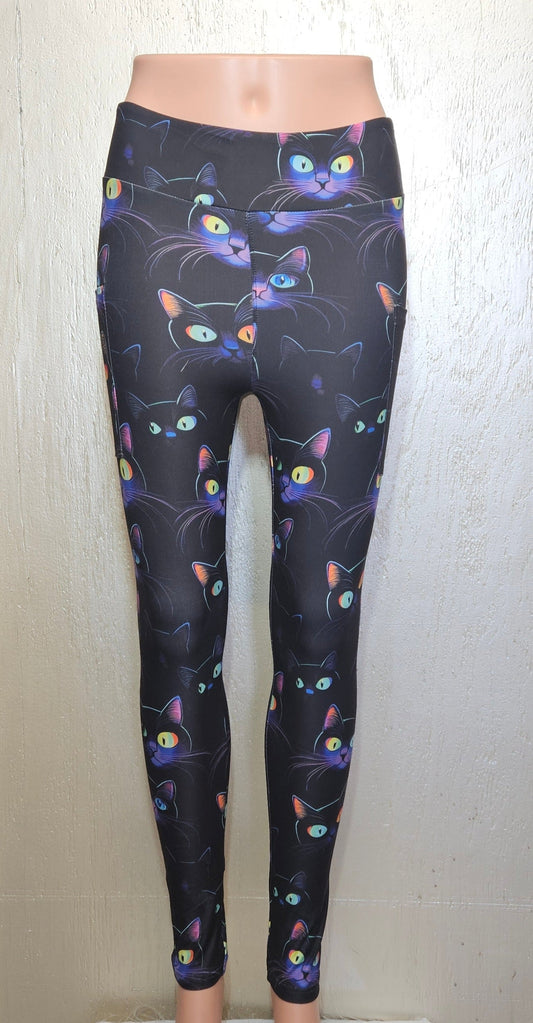 Neon Cats leggings and capris with pockets