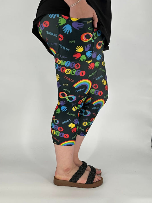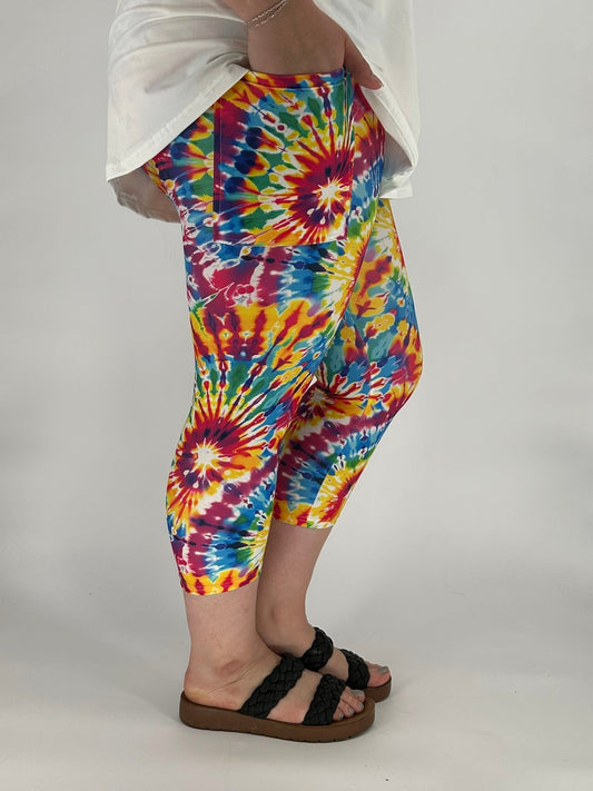 Rainbow Tie Dye Denim Capri Leggings w/ Back Pockets
